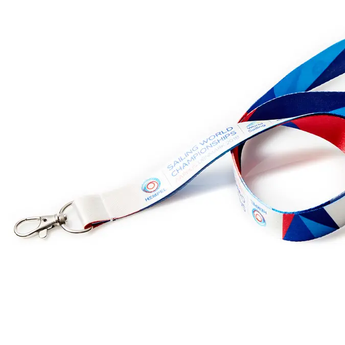 De lanyards op de foto zijn gemaakt van gerecycled katoen.