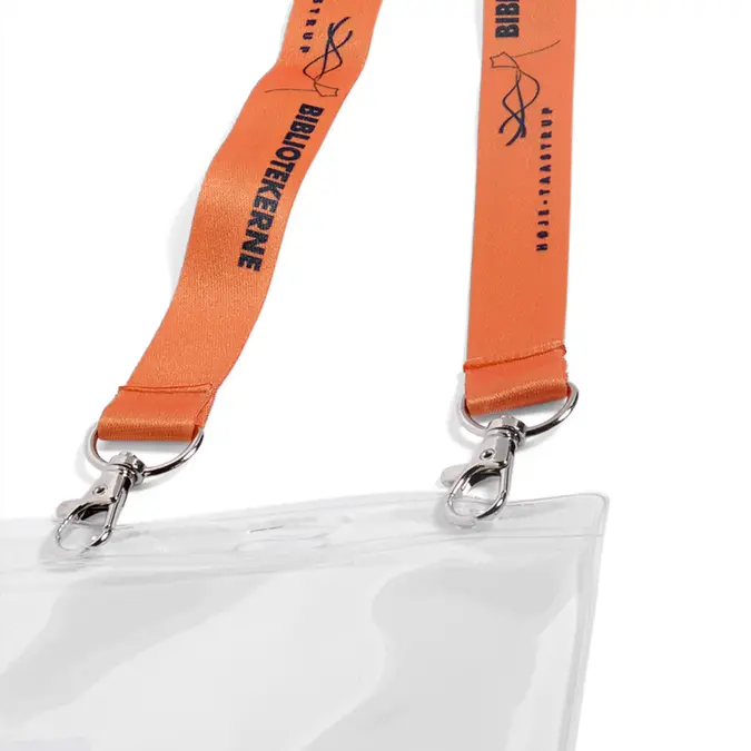 De stijlvolle sleutelkoord met twee karabijnhaken is ideaal voor conferenties en andere events waar deelnemers een programma, voedselbonnen en andere zaken in een hoesje rond de hals hangen.